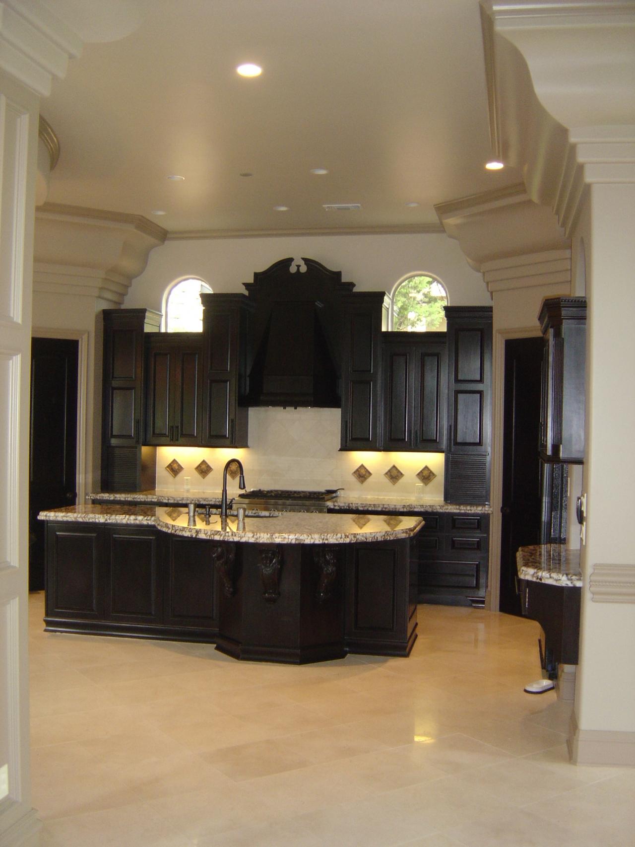 - Gourmet Kitchen with 6 burner Commercial Range , twin dishwashers, Microwave, wood paneled built-in refrigerator w/ ice maker, two walk-in pantries, built-in trash and cabinets that soar to over 11 feet.